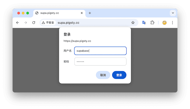 The default username and password are: supabase and pigsty.